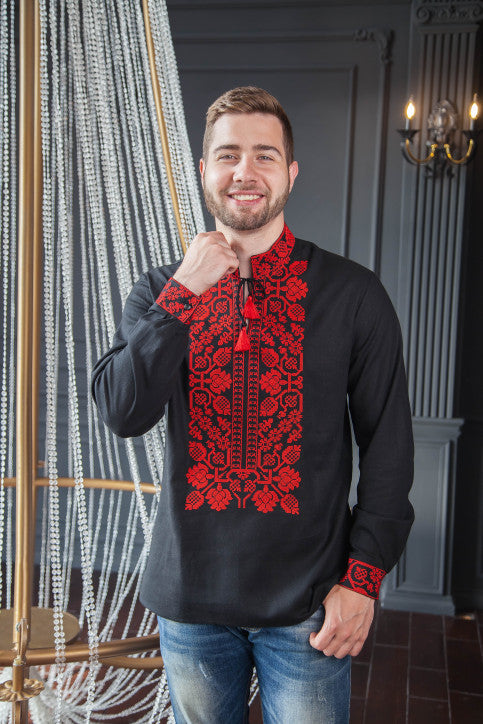 MEN’S BLACK VYSHYVANKA SHIRT WITH RED EMBROIDERY